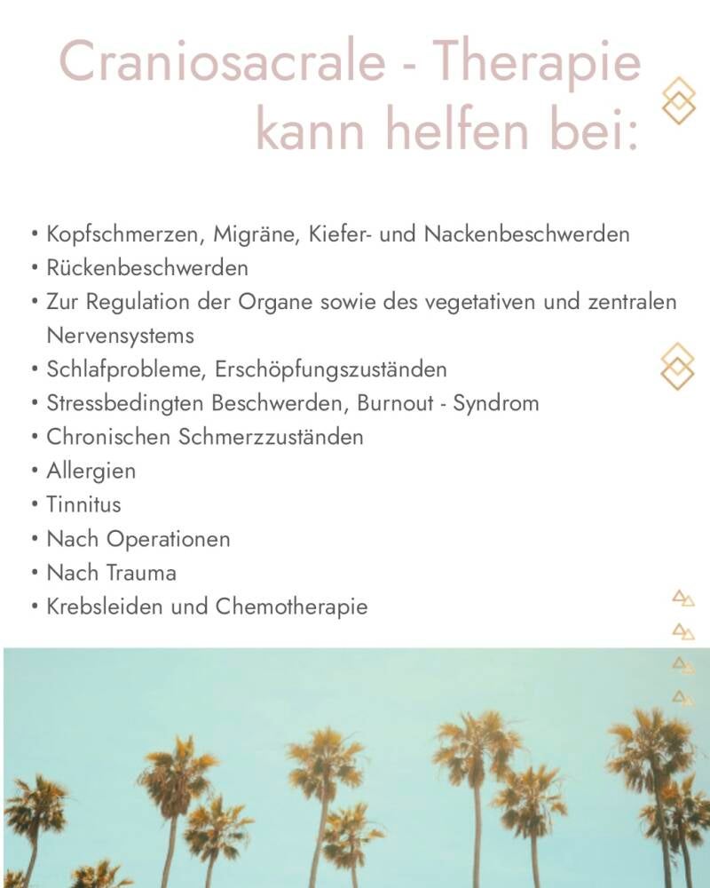 Die Cranio-Sacrale Therapie ist ein ganzheitlicher, unterstützender Ansatz, jedoch keine medizinische oder psychotherapeutische Behandlung und ersetzt diese nicht. Ich gebe kein Heilversprechen ab. Eine bestehende ärztliche oder therapeutische Behandlung sollte nicht abgebrochen werden. Solltest du dich in psychotherapeutischer oder psychiatrischer Behandlung befinden, ist es wichtig, dass du mich darüber offen informierst. Ohne eine schriftliche Einwilligung des behandelnden Therapeuten oder Psychiaters führe ich keine Cranio-Sacrale Therapie durch.